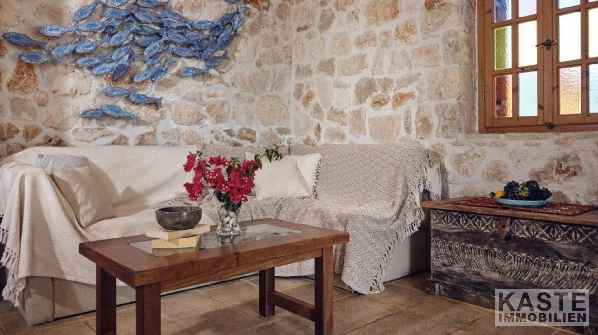 Die Villa ist komplett klimatisiert und verfügt über einen offenen Kamin. Der wunderschön gepflegte Garten, nur wenige Schritte vom Meer entfernt, besticht mit traditionellen Merkmalen und trägt zur göttlichen Atmosphäre des Ortes bei.