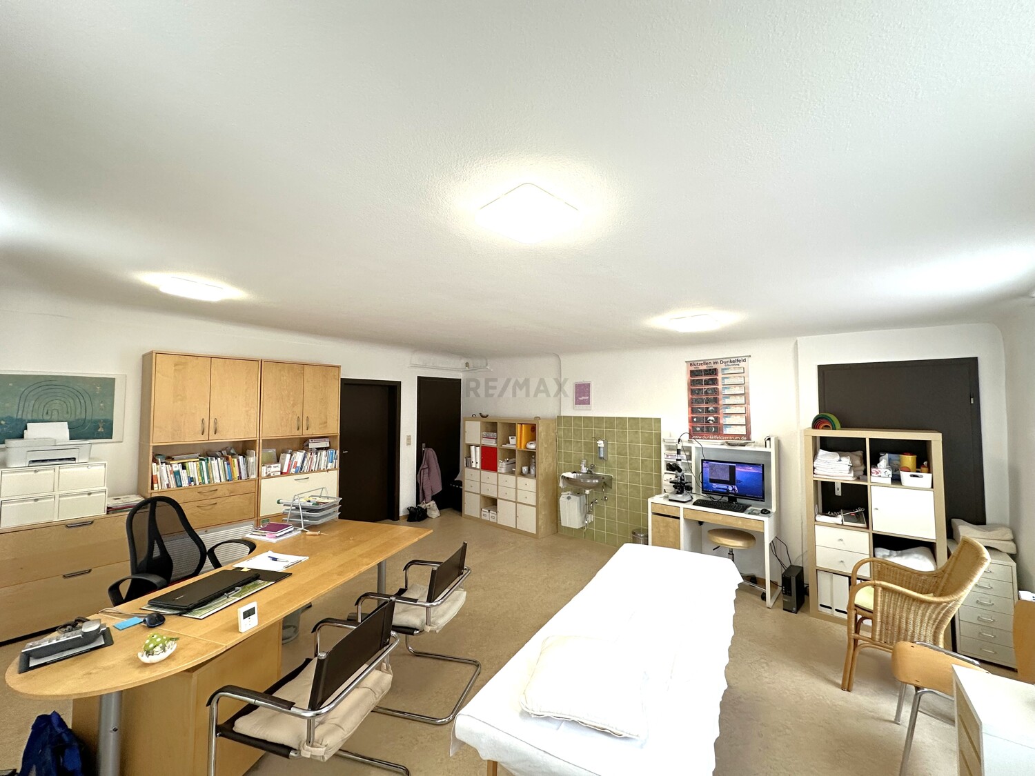 Die beiden Räume ( ca. 30m² + ca. 17m² ) liegen im 1. Obergeschoss und ist bequem über einen modernen Fahrstuhl erreichbar – ein echter Pluspunkt, insbesondere für Patientinnen oder Kundinnen mit eingeschränkter Mobilität. Einen pflegeleichten PVC-Boden finden Sie in beiden Räumen. Der größere Raum ist mit einem praktischen Waschbecken ausgestattet und eignet sich ideal für therapeutische Anwendungen, Beratungen oder gesundheitsnahe Dienstleistungen.