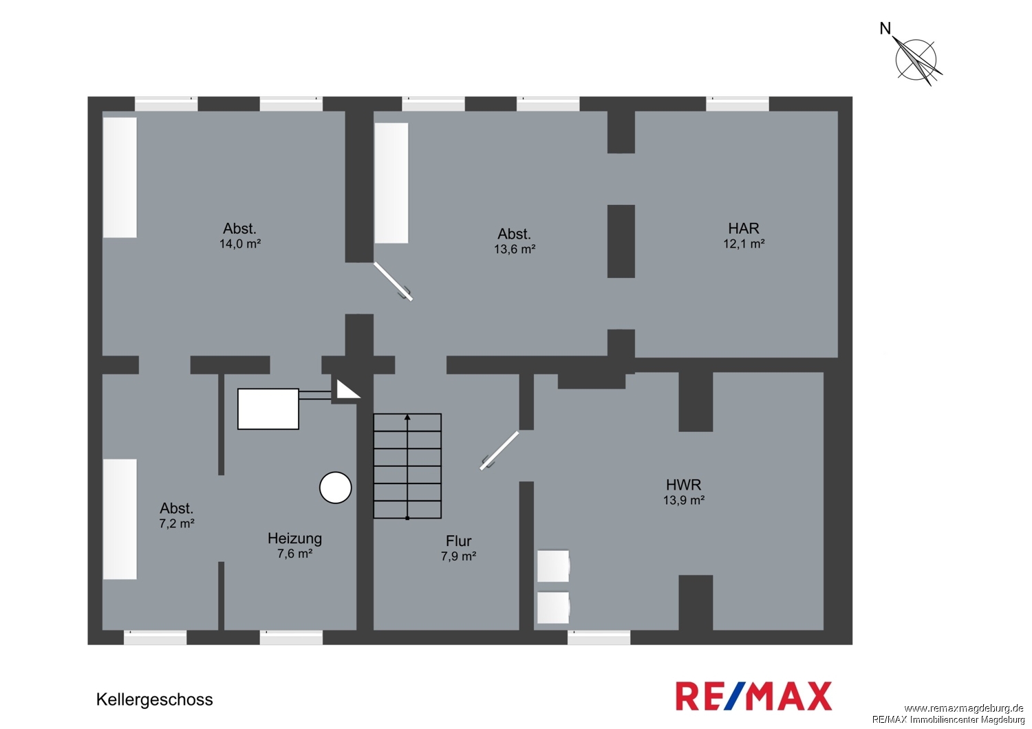 Keller: - Hauswirtschaftsraum mit Waschmaschinen- und Trockneranschluss, - Heizungsraum, - diverse Abstellräume,