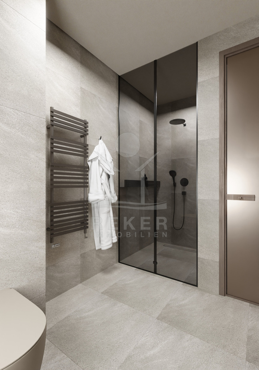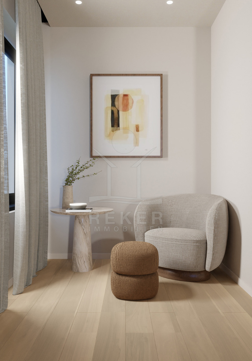 Das Gebäude ist Teil einer edlen, geschlossenen Wohnanlage mit fünf Häusern. Sie erinnert an ein kleines Dorf. Zwei separate Treppenhäuser strukturieren die neun Wohnungen klar und sorgen für angenehme Privatsphäre. Jede Einheit verfügt über zwei Außenstellplätze und einen eigenen Abstellraum, praktisch und komfortabel. Gepflegte Grünflächen rahmen das Ensemble ein und unterstreichen den ruhigen, hochwertigen Charakter. Die Fertigstellung ist für das Frühjahr 2026 vorgesehen.