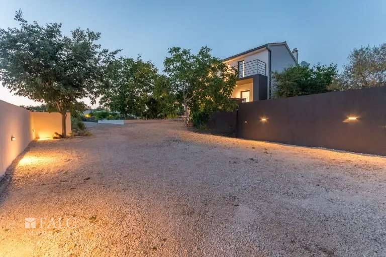 Das großzügige Grundstück umfasst ca. 2.000 m² und ist von Olivenbäumen, Weinreben sowie vielfältiger mediterraner Vegetation umgeben. Die Villa verfügt über eine Nettowohnfläche von ca. 190 m², verteilt auf zwei Etagen.