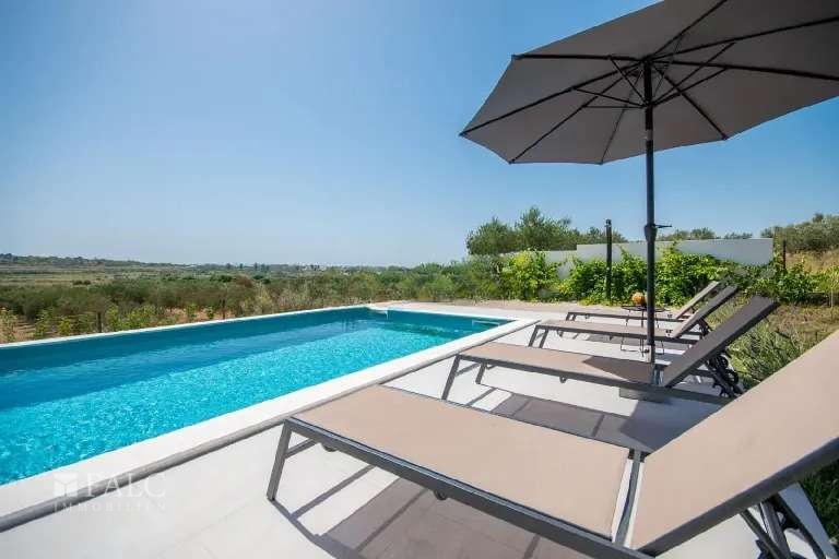 Andreas Franzke von FALC Immobilien präsentiert diese exklusive Villa, die sich in der ruhigen und äußerst begehrten Wohnlage Crno befindet, nur wenige Fahrminuten von der historischen Stadt Zadar entfernt. Eingebettet in eine idyllische mediterrane Landschaft bietet die Immobilie ein Höchstmaß an Privatsphäre, Ruhe und Lebensqualität.
